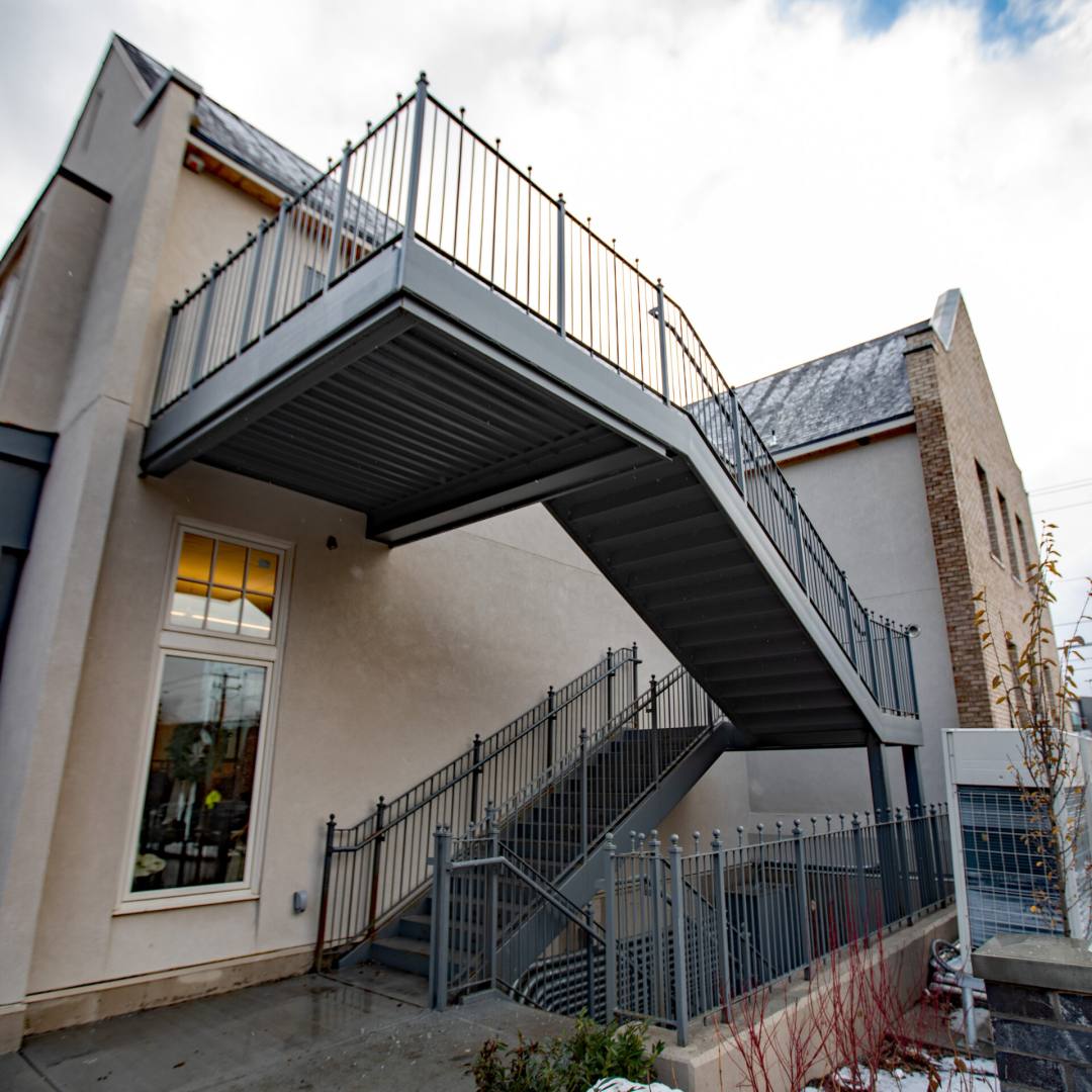 This beautiful office and retail space was designed by Establish Design, who enlisted the services of Rightway Steel to provide all steel required for the project. Our team worked hard to fulfill their vision. Rightway detailed, fabricated, delivered, and installed all structural and architectural steel, in addition to stairs, canopies, a trash gate, and custom topped railings.